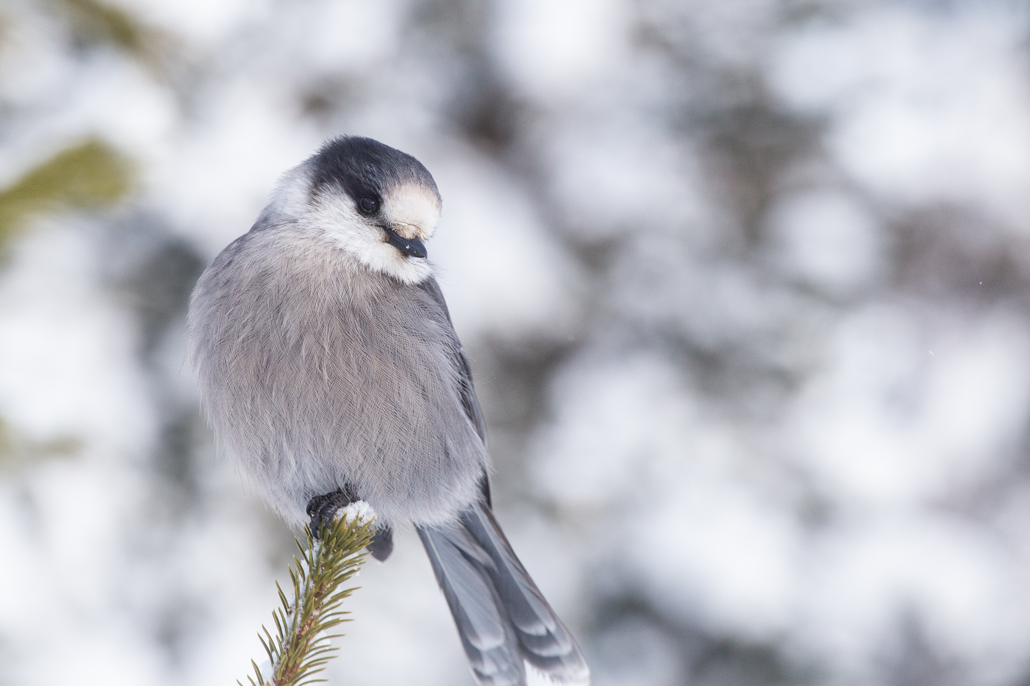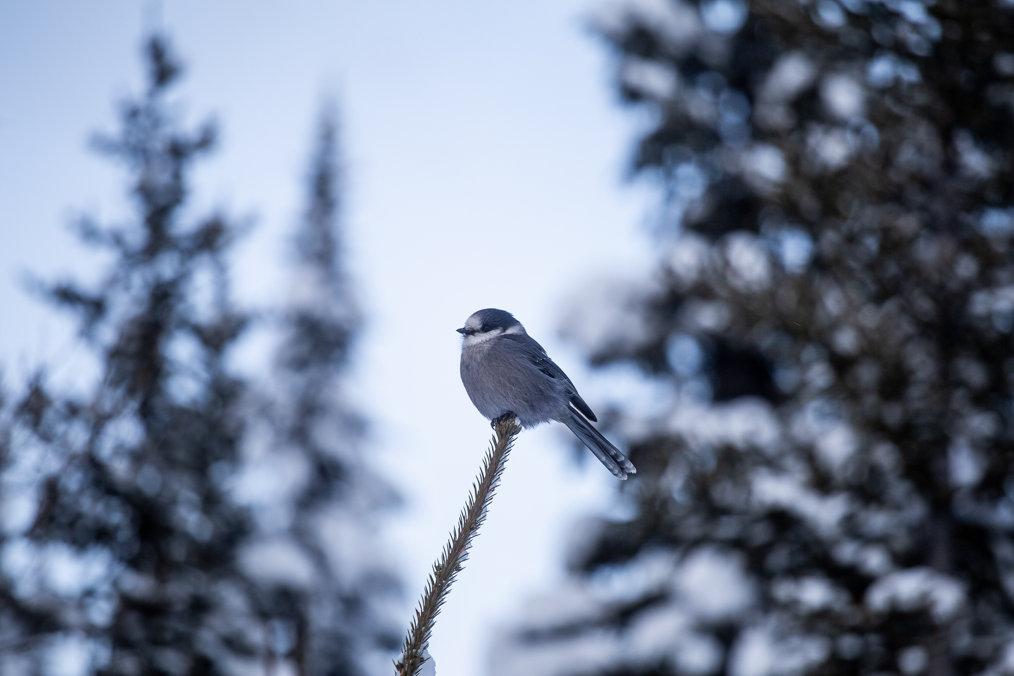 A pair of Whiskey Jacks were curious about the photographer wandering about the bush taking photos of snowmobilers on Saturday, January 5.