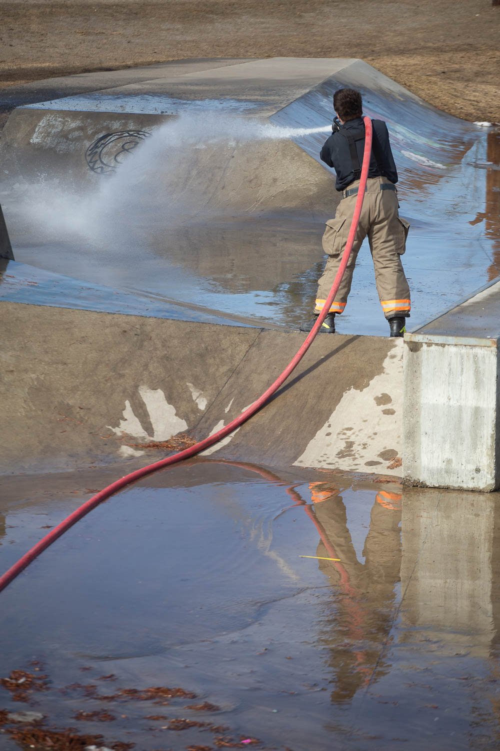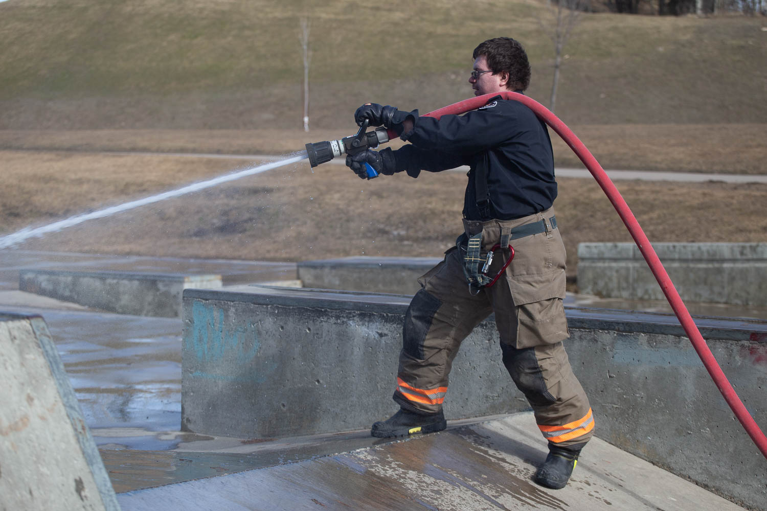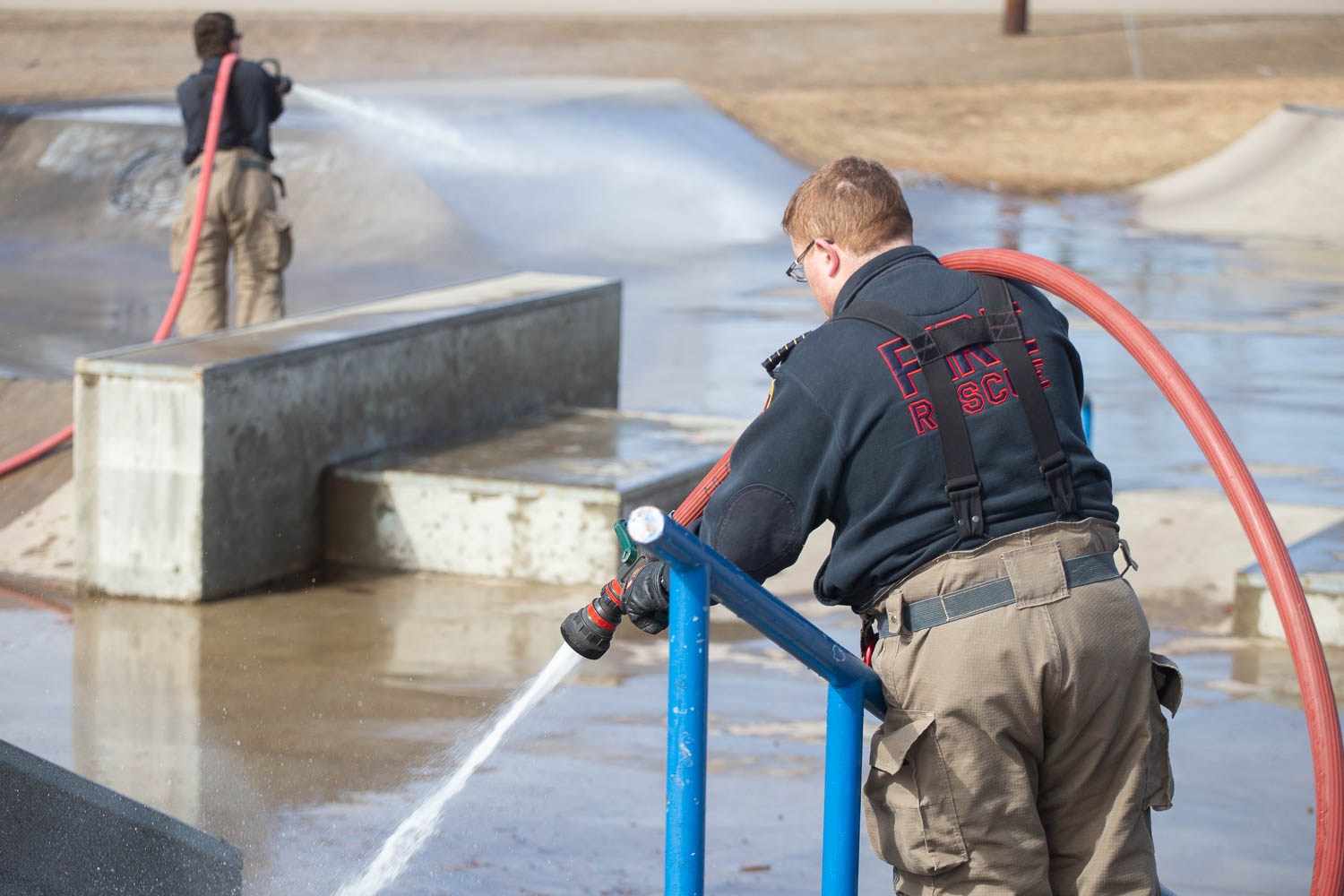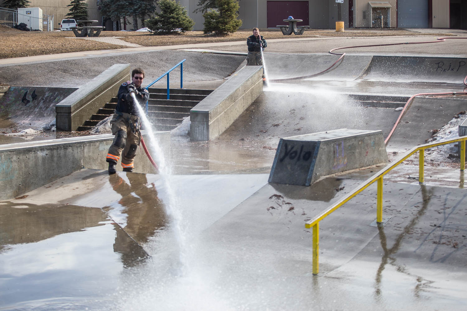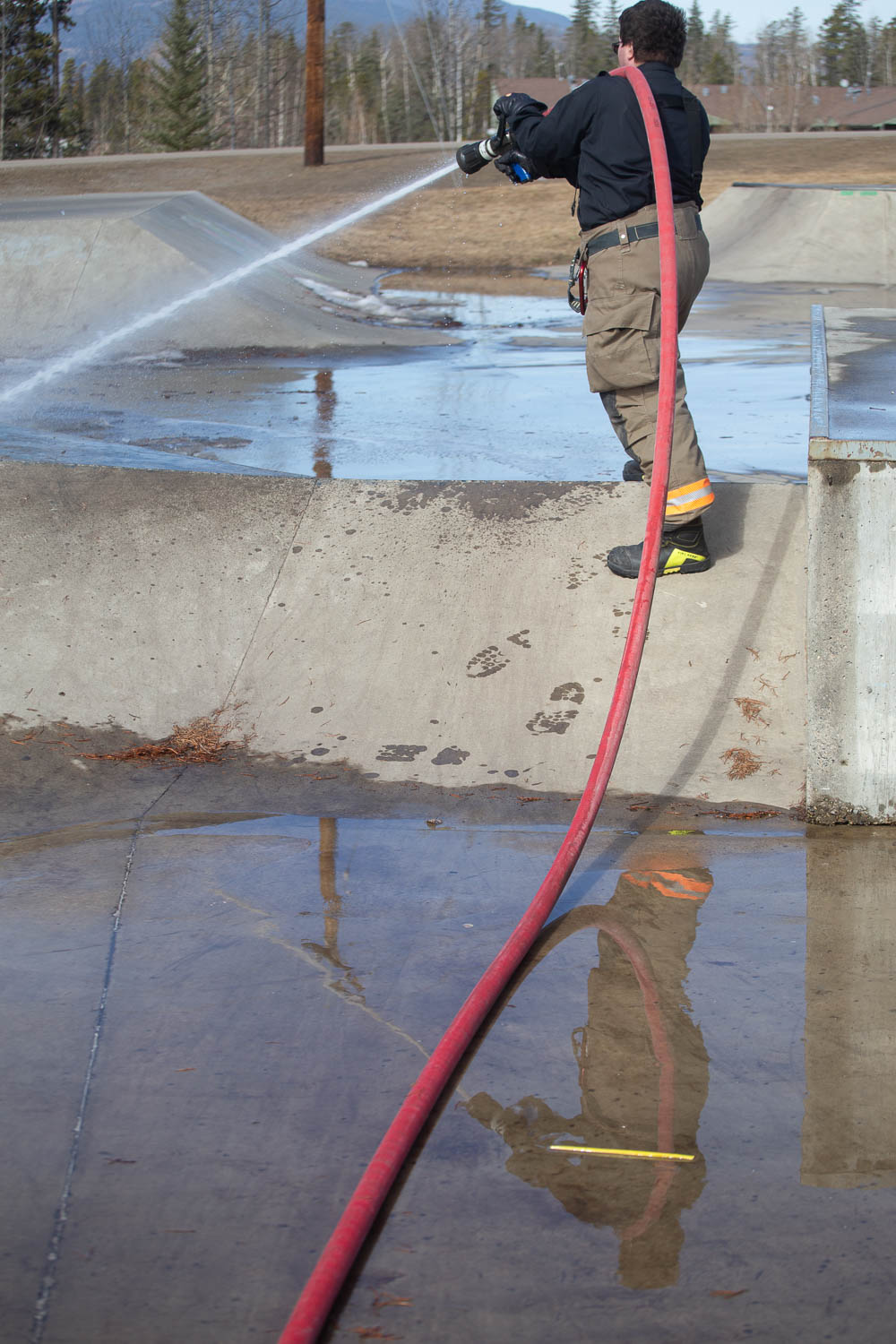 On Friday, April 5 the Tumbler Ridge Fire Department had its usual Friday morning practice. And, as has become a tradition for the department over the last few years, they went out to clean the last bits of ice and debris from the skatepark.