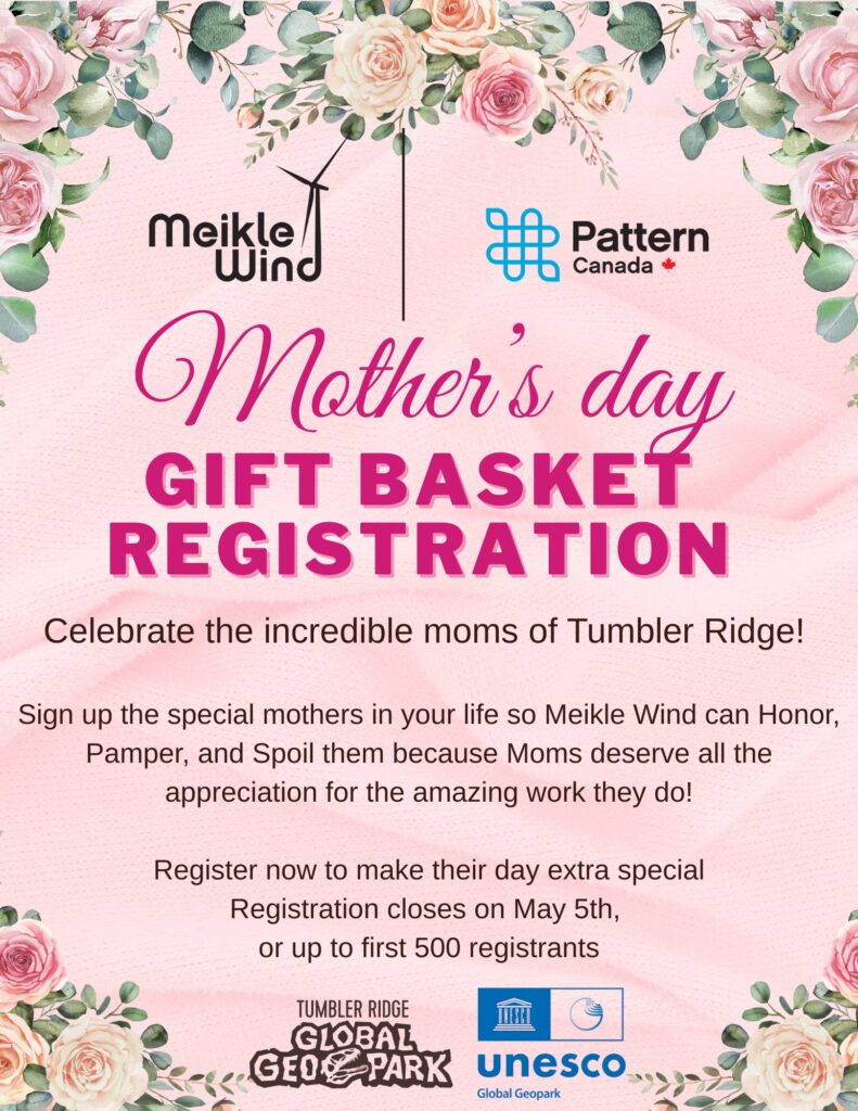 If you’re picking this paper up after May 5, you’ve missed your chance to get the annual Mother’s Day Basket from the Tumbler Ridge Geopark, and sponsored by Meikle Wind.