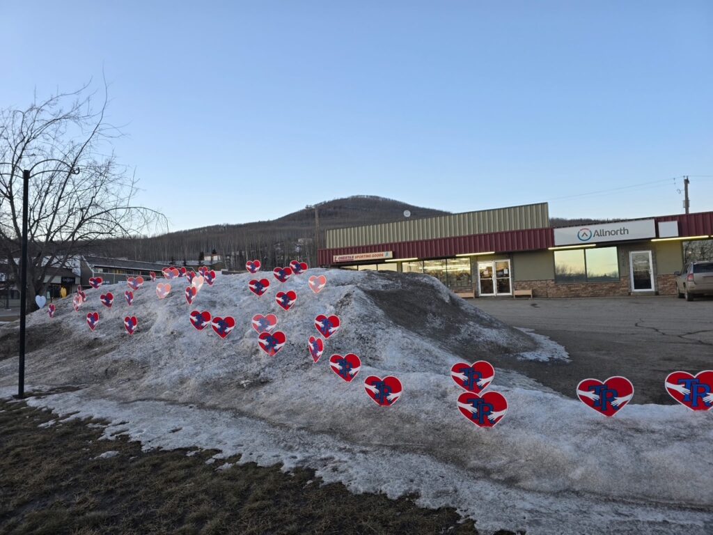 Local resident Delena Nelson, with help from her family, has launched a heart campaign titled “TR, our hearts are with you.” The initiative invites community members to take part in a visible show of support for the people of Tumbler Ridge.