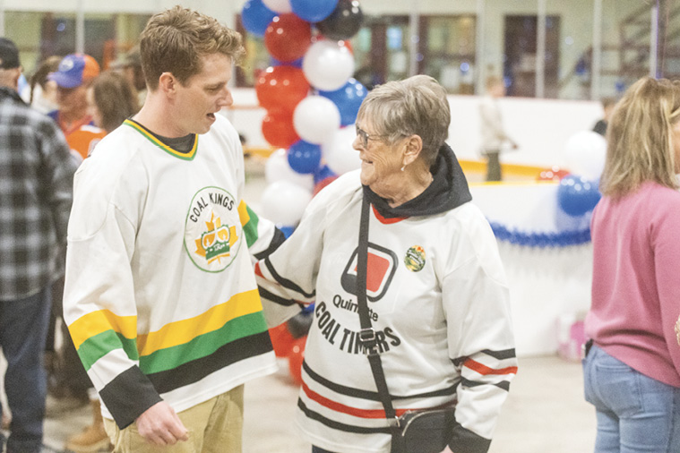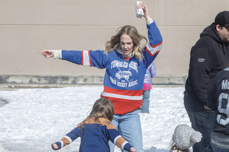 Drummers and dancers showed up from Saulteau First Nations, while members of the Feral Hockey Moms Club spent much of their time voting for Tumbler Ridge, joined by Theresa Nevills and Bob Zimmer. While there were many NHL jerseys, Riley and Karen showed their OG TR spirit with Coal Kings/Coal Timers jerseys.
